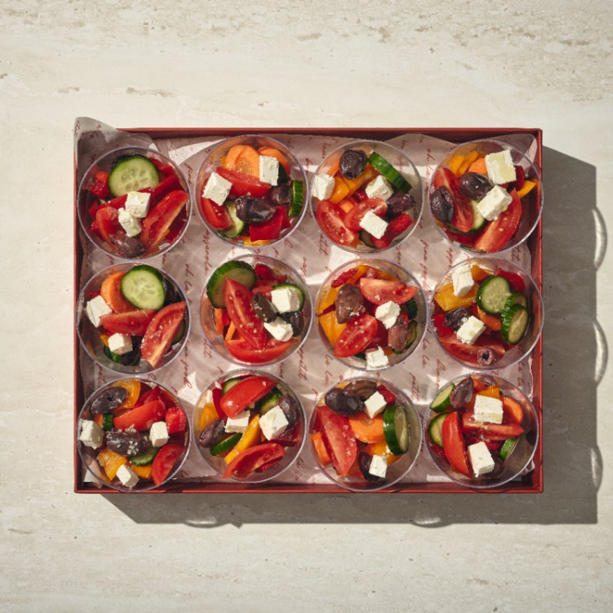 סלט יווני קלאסי מתובל , כל מנה כוללת ירקות חתוכים וגבינת פטה